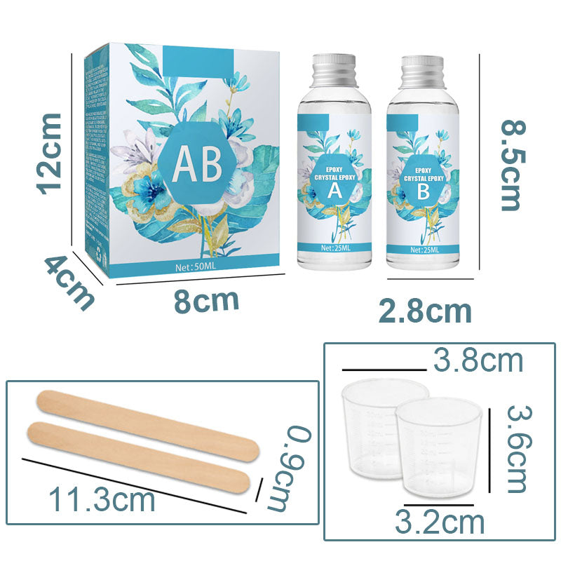 Verpakkingsinhoud: 1/3/5 × Transparante Harde Epoxyhars Lijmset (Elke set bevat: 2 × Epoxyhars Lijm, 2 Houten Roerstokjes, 2 × Wegwerphandschoenen, 2 × Maatbekertjes)