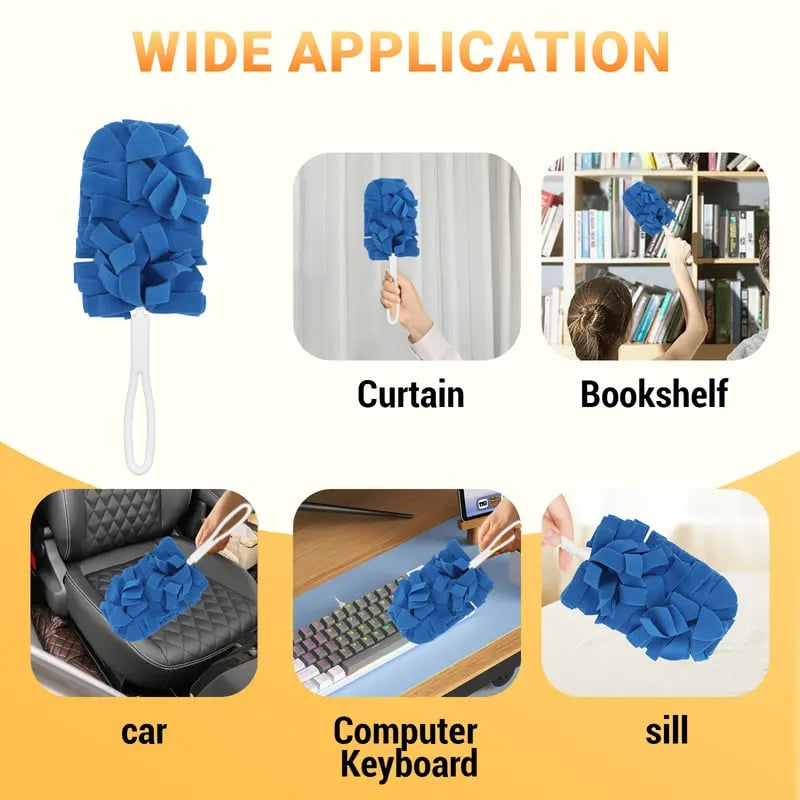Het flexibele, rondom doorlopende vezelontwerp vormt zich moeiteloos naar elke vorm. Bereik diepe, krappe spleten, ventilatorbladen en onregelmatige oppervlakken waar platte stofdoeken niet bij kunnen. Van uw dashboard tot uw boekenplank, het is de ultieme tool voor meerdere oppervlakken.