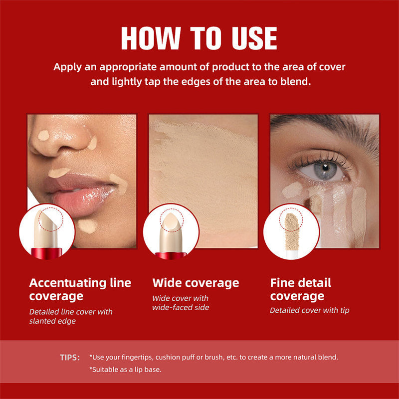 Pakket bevat: 2x Dubbelzijdige Langdurige Lichtgewicht Concealer