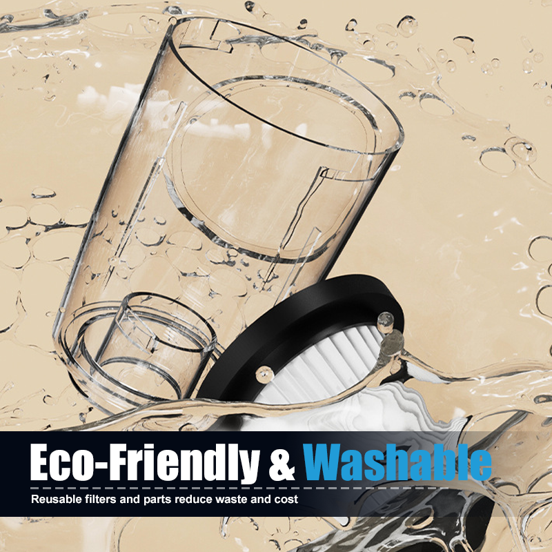 EENVOUDIG ONDERHOUD & MILIEUVRIENDELIJK - Alle filters en mondstukken zijn wasbaar en herbruikbaar. Dit bespaart geld en vermindert afval. De stofcontainer van 600 ml minimaliseert de frequentie van legen en zorgt voor ononderbroken schoonmaakbeurten.