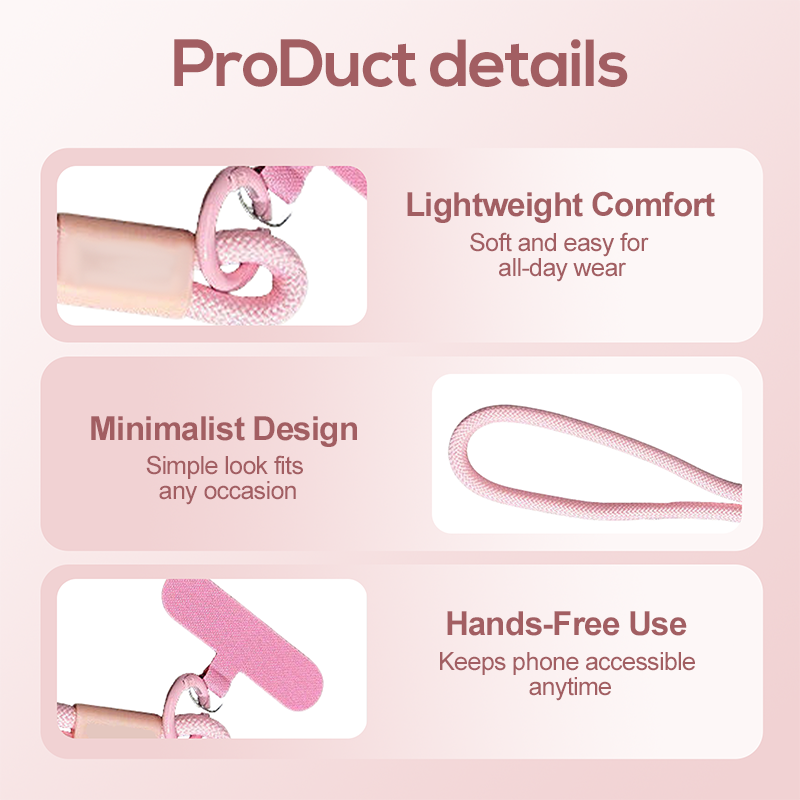 GEMAKKELIJKE HANDSFREE TOEGANG – Met je telefoon om je nek of pols kun je vrij bewegen zonder constant vast te houden. Deze functie is vooral praktisch voor woon-werkverkeer, winkelen of evenementen waar snelle telefoontoegang nodig is. Het koord helpt misplaatsing te voorkomen en voegt gemak toe aan uw dagelijkse routine, waardoor de kans op onbedoeld vallen wordt verkleind.