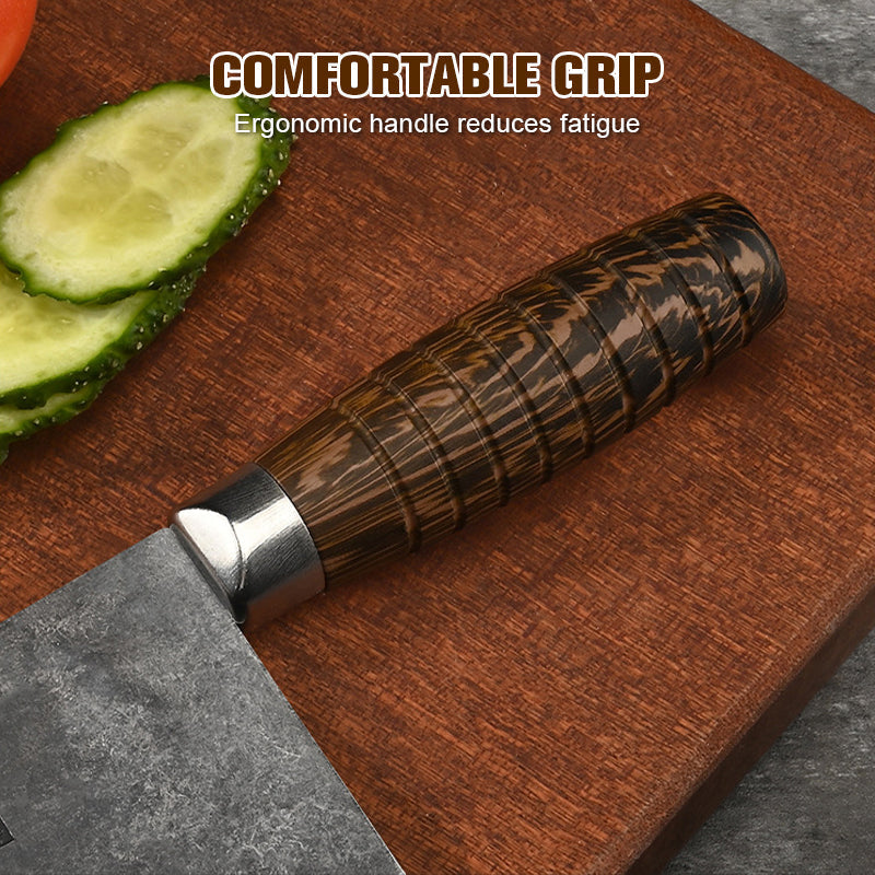 ERGONOMISCH COMFORT – Het snijmes is uitgerust met een goed uitgebalanceerd handvat dat natuurlijk in de hand ligt, waardoor spanning tijdens langdurig gebruik wordt verminderd. Dit doordachte ontwerp minimaliseert vermoeidheid en maximaliseert controle, wat het eenvoudiger maakt om nauwkeurigheid en comfort te behouden bij zowel snelle taken als uitgebreide bereidingen.