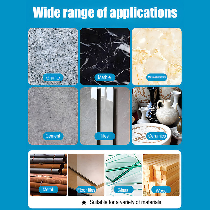 BREDE TOEPASBAARHEID: Geschikt voor diverse materialen, waaronder tegels, keramiek, graniet, marmer, beton, metaal, glas en hout, voor slijpen, renoveren, afwerken van randen en ontbramen.