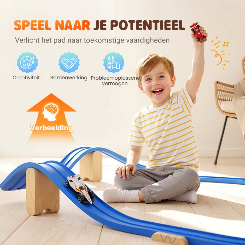 🎁Vroege kerstuitverkoop met 50% KORTING🎅🧩 DIY racebaan van aluminiumlegering met zuignappen - Verstelbare lay-out voor creatief spelen, ontwikkelt motorische vaardigheden en logica 🚗📦