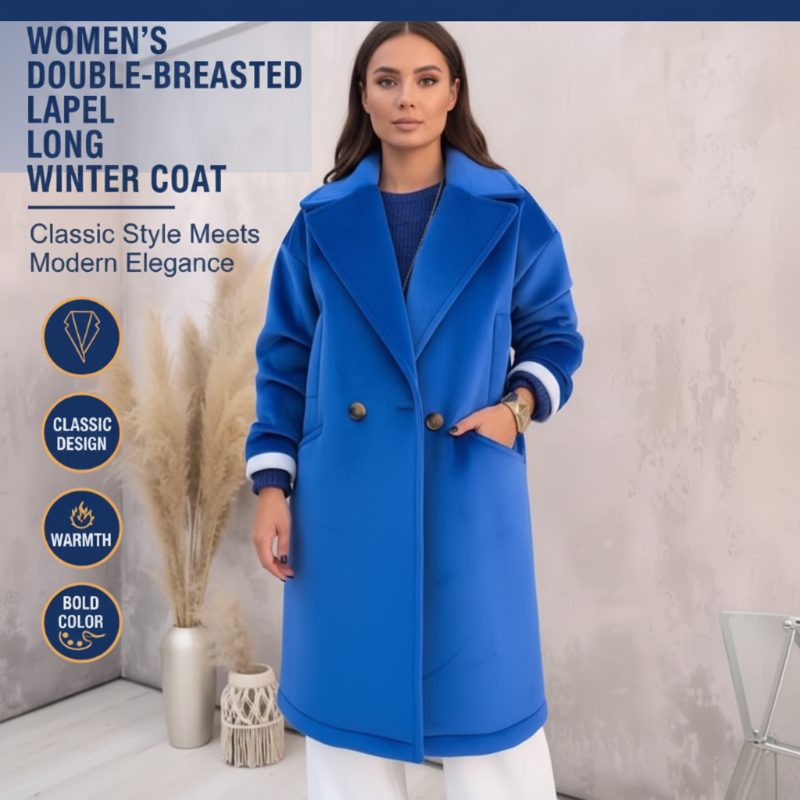 Dames Lange Winterjas met Dubbele Knopenrij en Reverskraag