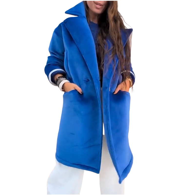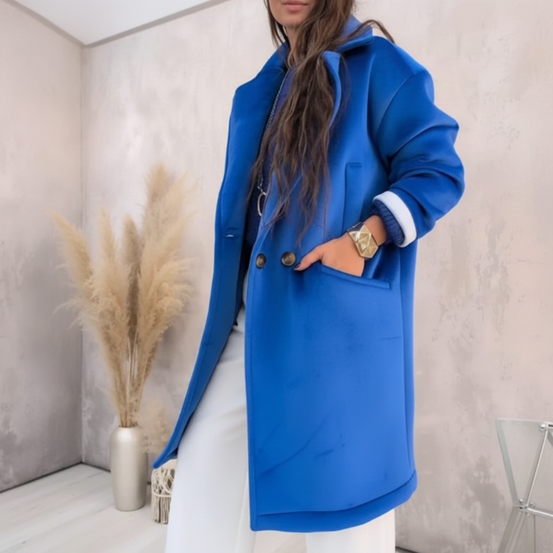1 x Dames Lange Winterjas met Dubbele Knopenrij en Reverskraag