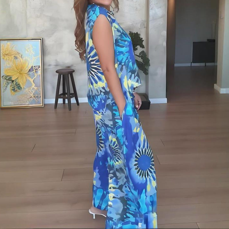 Package Includes: 1* Women’s Printed Sleeveless Top & Wide-Leg Pants Set