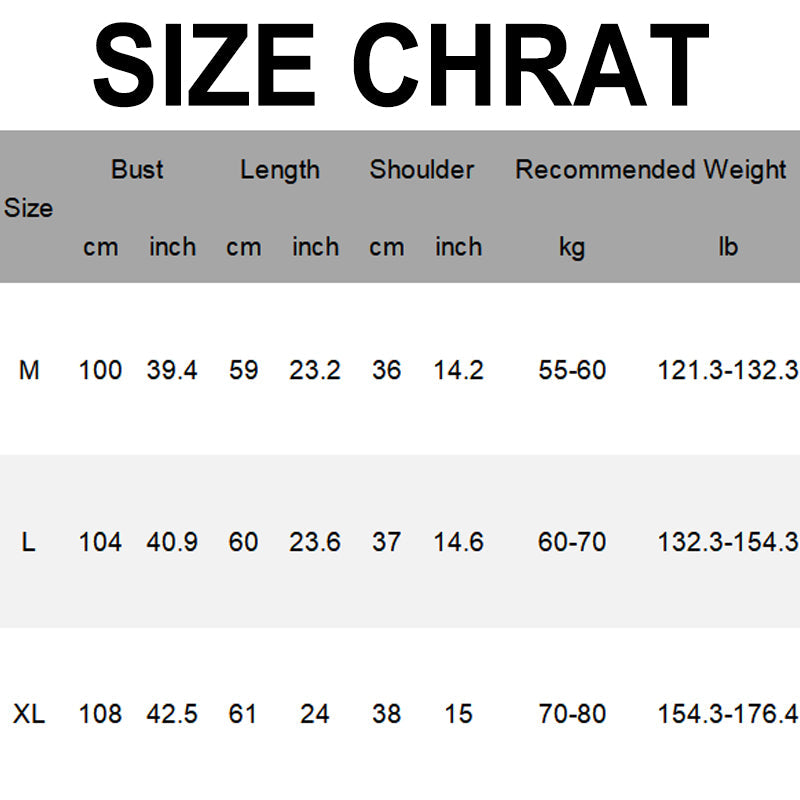Controleer de maattabel voordat u bestelt om zeker te zijn van de beste pasvorm.